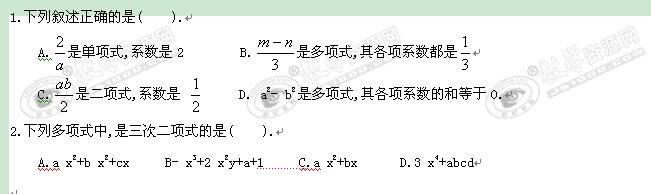 数学:第一章《整式的运算》单元测试2(北师大版七年级下)