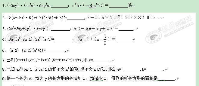 数学:第一章《整式的运算》单元测试8(北师大版七年级下)