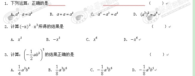 数学:第一章《整式的运算》单元测试9(北师大版七年级下)