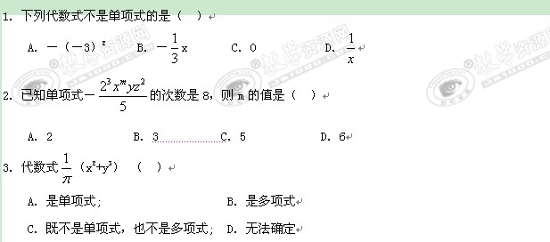 数学:1.1《整式》同步训练(北师大七年级下)