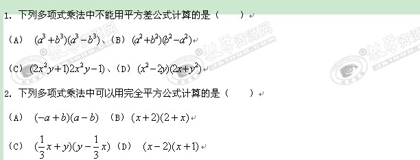 数学:1.8.1《完全平方公式(1)》同步训练(北师大七年级下)