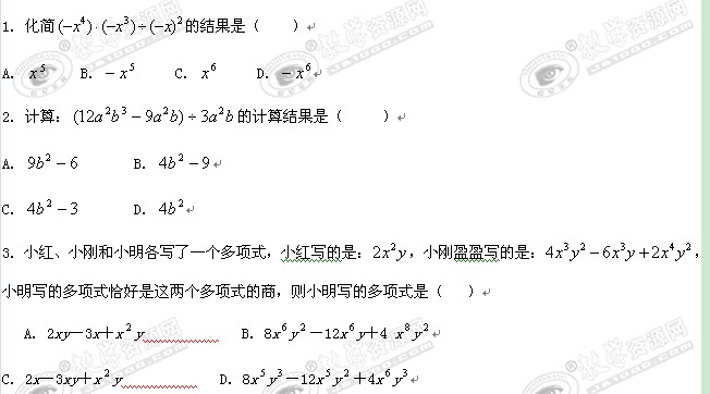 数学:1.9.1《整式的除法(2)》同步检测(北师大七年级下)