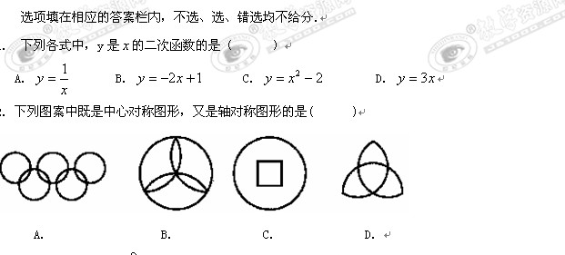 富阳市永兴中学11-12学年九年级上学期第二次知识检测试卷(数学)