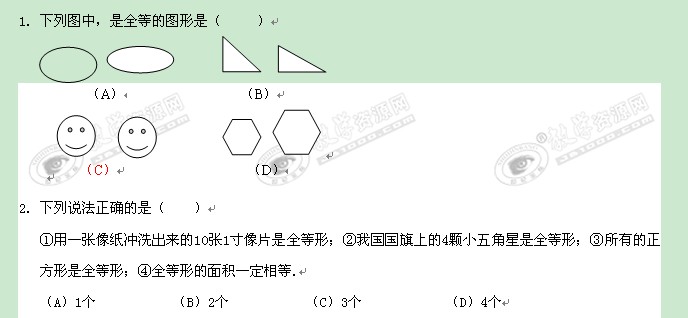 数学:5.2《图形的全等》同步训练(北师大七年级下)