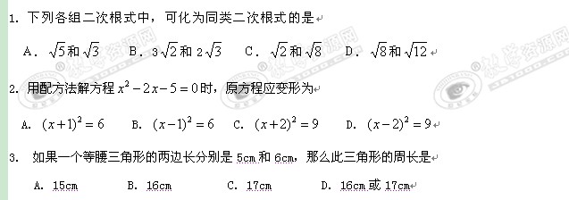 福建省龙海市第二中学2017届九年级上学期期中考试试题