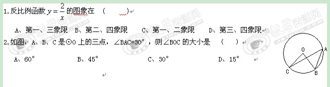 浙江省杭州市余杭区星桥中学2012届九年级上学期期中考试试题(数学)