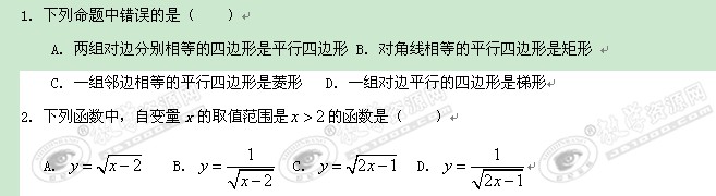 福建省龙海市第二中学2017届九年级上学期期中考试试题