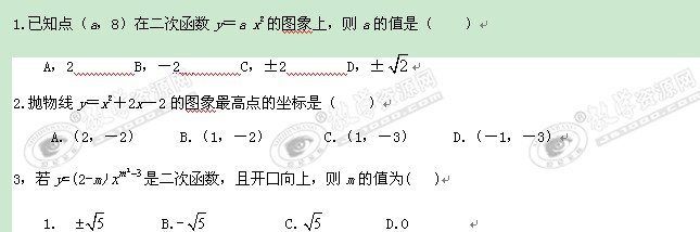 数学:《二次函数》单元测试题(北师大版九年级下)
