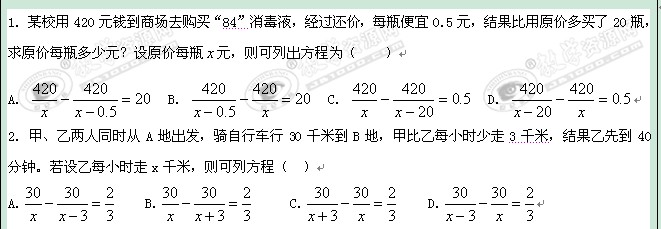 数学:重庆市江津五中16.3《分式方程》练习题(人教版八年级下)