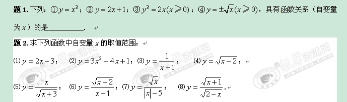 数学:《变量与函数(二)》同步典型例题分析专题(华东师大版八年级下)
