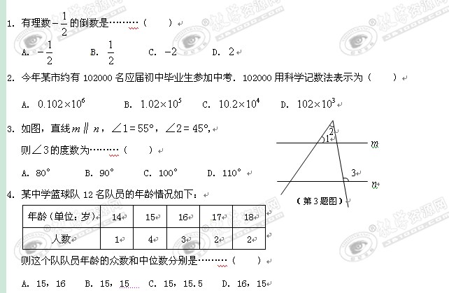 浙江省海宁市第一初中2012届九年级第一次中考模拟考试试题(数学)