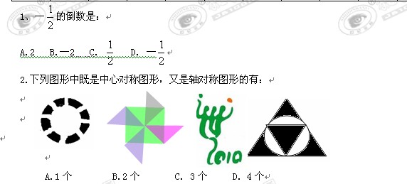 2012年贵州遵义县九年级下学期联考试卷(数学)缺答案