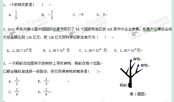 杭州采荷中学11-12学年九年级下学期3月月考试卷(数学)