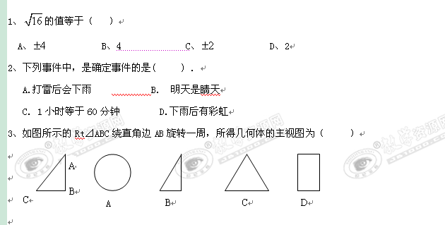 福建省龙海市第二中学2017届九年级上学期期中考试试题