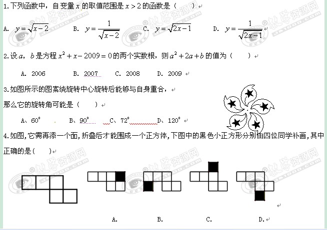 2012年春湖北省鄂州市梁子湖区宅俊中学九年级下学期第一次月考(数学)