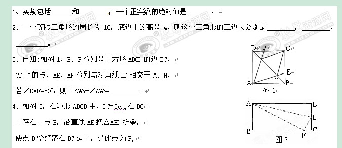 河南省郑州市二砂寄宿学校八年级竞赛试题(数学)缺答案