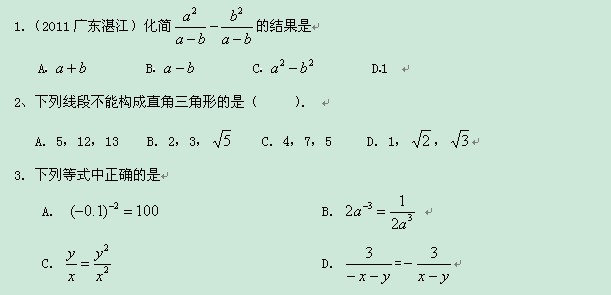 安徽芜湖县红杨中学11-12学年八年级下学期期中考试试题(数学)