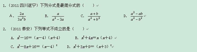 广东电白县第二中学11—12学年八年级下学期期中考试试题(数学)