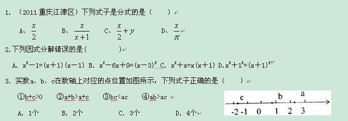 广东茂名市育才中学11—12学年八年级下学期期中考试试题(数学)
