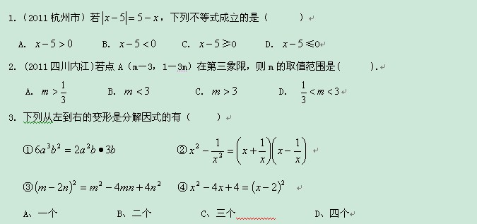 成都市双流县环佳中学11-12学年八年级下学期中考试试卷(数学)