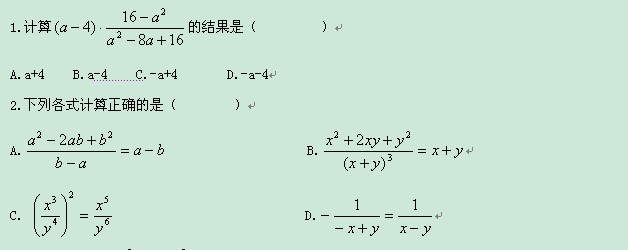 数学:9.2《分式的运算》同步测试(沪科版七年级下)