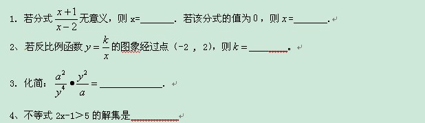 江苏省常州市翠竹中学11-12学年八年级下学期期中考试试题(数学)缺答案