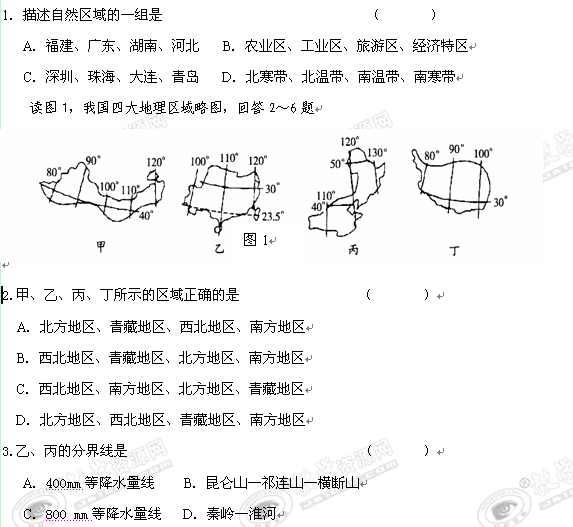 福建省武夷山一中11-12学年八年级下学期期中考试试题(地理)