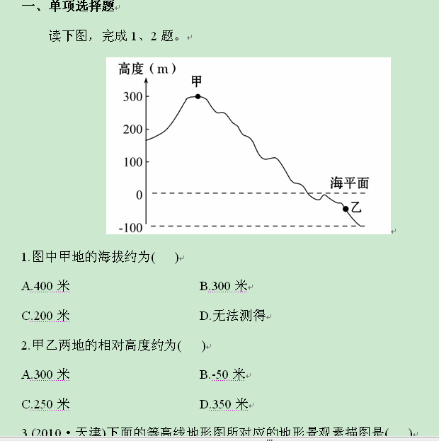 [精练精析]课时训练·基础达标 1.3.2《地形图的判读》(人教版七上)