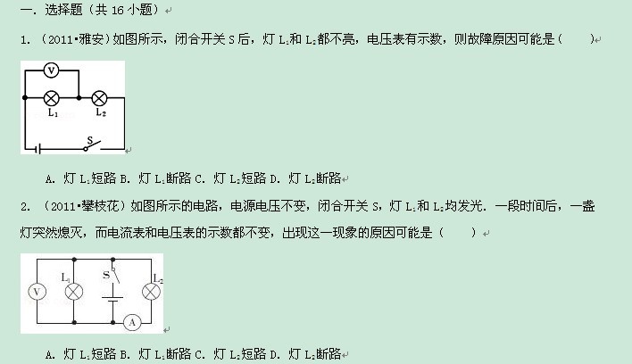 2012年中考物理高频考点(二):《电路故障》(含解析)