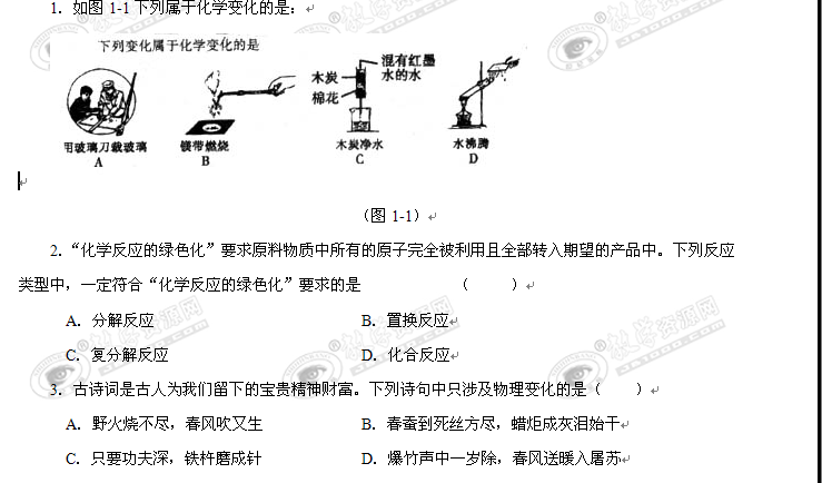 2010年中考化学新课标专题题测试卷一