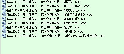【打包下载】备战2012中考物理复习: 15分钟精华题(9份)