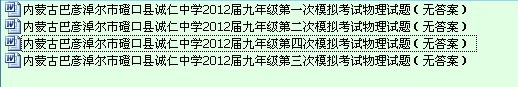 【打包下载】内蒙古巴彦淖尔市磴口县诚仁中学2012届九年级模拟考试物理试题(无答案)(4份)