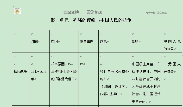 历史:八年级上册单元知识归纳 (人教新课标版)