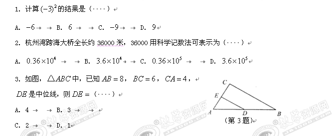 2008年浙江省嘉兴市中考试题(数学)