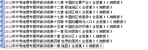 【打包下载】2012年中考地理专题突破训练习题(10套)