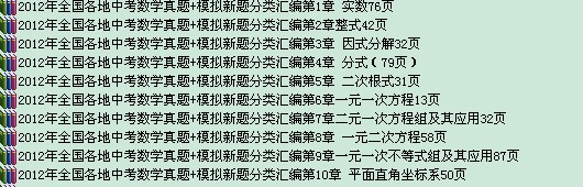 【打包下载】2012年全国各地中考数学真题+模拟新题分类汇编(10份)