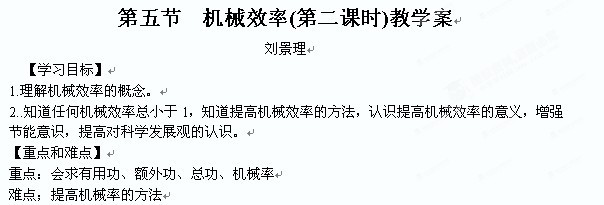 福建省大田县第四中学九年级物理 第五节《机械效率》教学案