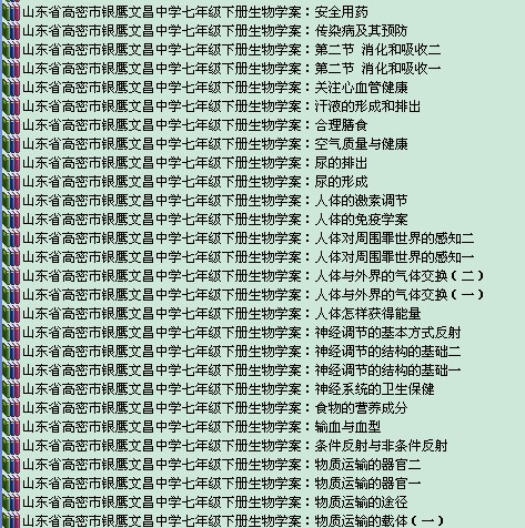 【打包下载】山东省高密市银鹰文昌中学七年级下册生物学案(28份)