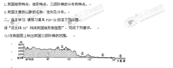 地理:2.1《中国的地形》(第一课时)练习题(湘教版八上)
