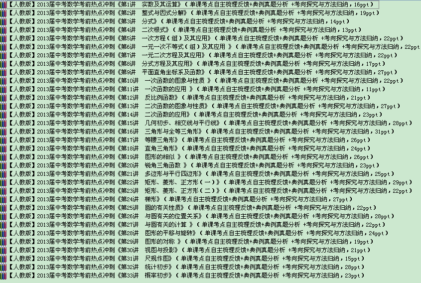 【打包下载】【人教版】2013届中考数学考前热点冲刺(单课考点自主梳理反馈+典例真题分析 +考向探究与方法归纳)(33份)