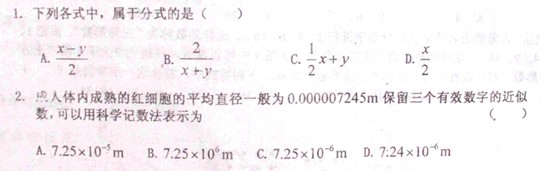 山东省微山县10-11学年八年级下学期期中考试试题(数学)扫描版