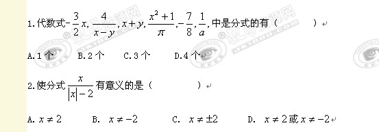 数学:八年级随堂演练《分式》4同步练习