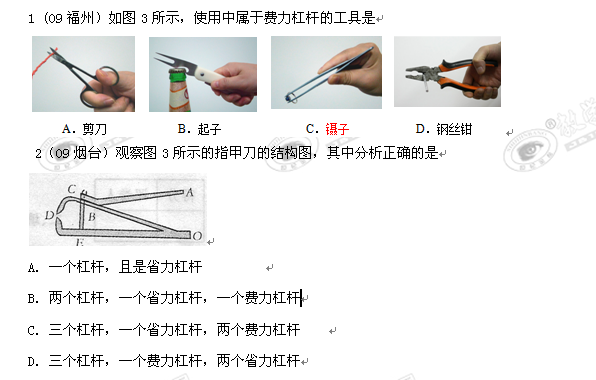 2009年全国各地中考真题精选汇编:第八章 简单机械