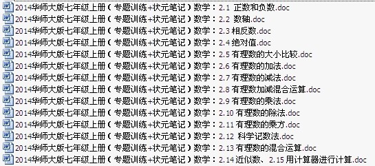 【打包】2014华师大版七年级上册(专题训练+状元笔记)数学:第二章 有理数(共14份)