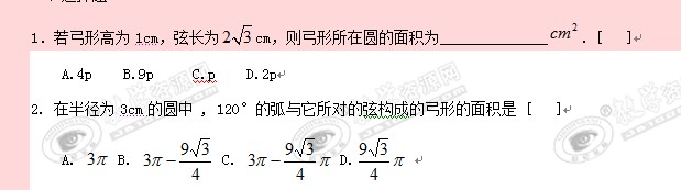 数学:3.7《弧长及扇形的面积》同步练习(鲁教版九年级上)