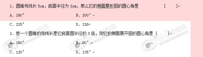 数学:3.8《圆锥的侧面积》同步练习(鲁教版九年级上)