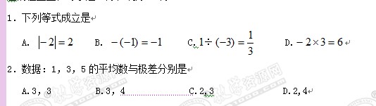 2011湖南省湘潭市初中毕业学业考试试题卷(数学)无答案