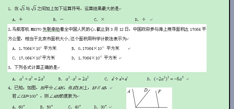 福建省龙海市2016-2017学年八年级上学期期中考试试题