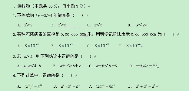 北京市门头沟区2013-2014学年七年级数学下学期期末考试试题