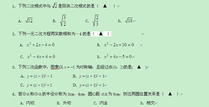 江苏省无锡惠山区阳山中学2013-2014学年度第一学期初三数学12月月考试卷